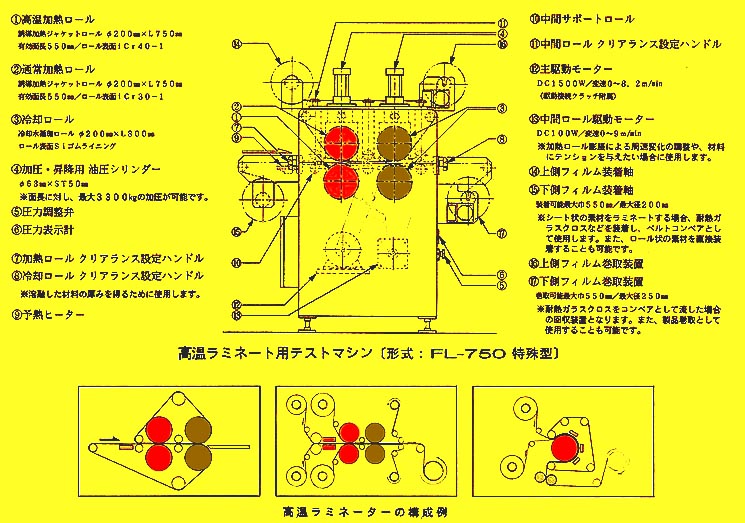 一般压膜机的加热温度最高为200℃(和本公司相比),这不仅仅是卷带温度未上升的问题,还涉及素材加热时有效幅内的温度安定及维持能量等各种问题。 这里介绍的高温压膜机,内装用特殊的高温卷带,加热温度最高可达400℃. 可用于不使用聚酰亚胺和氟的熔解积层・黏着层的黏着・高速化等多种用途。 也可进行组件生产,向设计带型等各种类型发展。