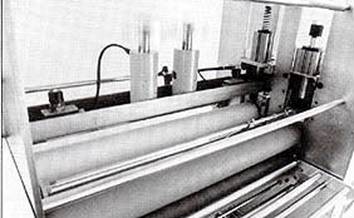 使压膜卷振动,便可实现目前为止不可能的功能。1一边垂直敲打边按入,便可实现压膜,这样可以更加附着材料的凹凸面。实现对目前为止不能实现的对细微缝隙的压膜。 2 压膜加工是对黏胶施加压力进行的,振动压膜机有在振动周期内无需加压,从而有免除连续加压的效果。消除了对黏胶进行不必要的加压。而且,对橡胶和布等柔软的材料也无需拉伸直接加工。除此之外,若是橡胶卷,对相同性质卷进行加压时严格地说橡胶会发生扭曲。这会给精密的压膜加工带来不良影响,但振动压膜机因振动效果而消除了橡胶的扭曲。 3 进行钢板等厚材料的压膜加工时,因其振动效果,即使较细的卷带也不用担心会弯曲,可进行高水平的压接。